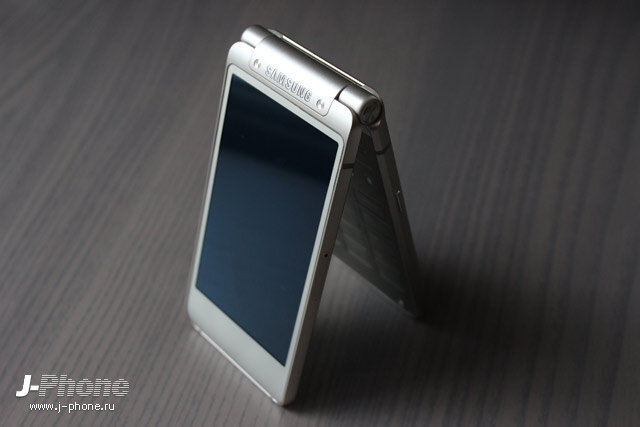 В открытом состоянии перед пользователем оказывается такой же 3,9-дюймовый сенсорный экран, покрытый стеклом, и аппаратная клавиатура с крупными отдельно стоящими друг от друга кнопками. Благодаря двум увесистым дисплеям и встроенному 2000 мАч аккумулятору центр тяжести расположился аккурат в районе петли, соединяющей две половинки телефона. Закрывая телефон, на экран выводятся обои в виде так называемых премиум-часов. Дизайнеры Samsung предложили аж семь вариантов, от технологичного шестереночного до рококо. В дополнение к стильному визуальному ряду часы еще оснащены и звуком тикающих стрелок.