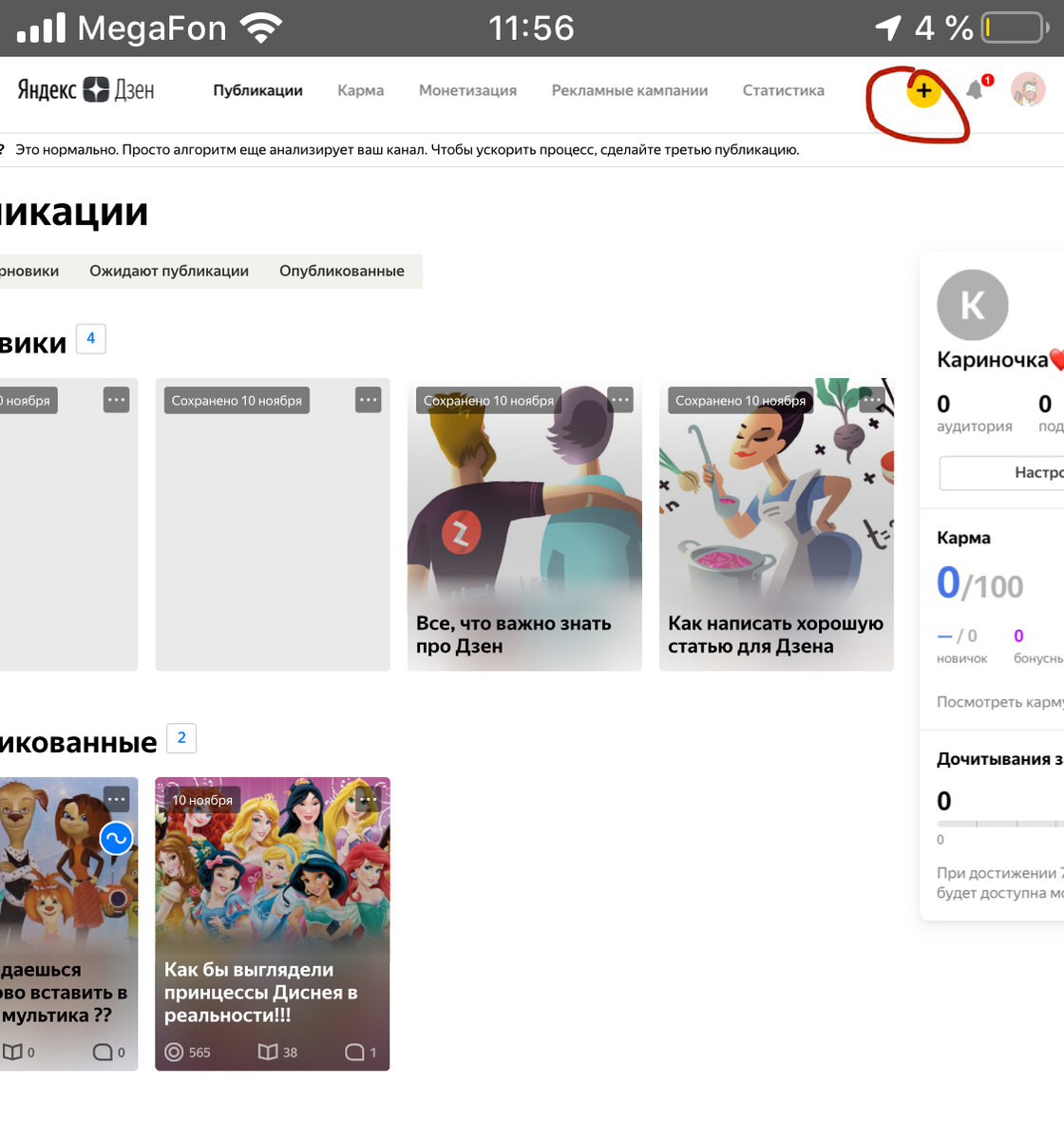 Как опубликовать статью в дзен, для начинающих. Привет! В первой статье я говорила что очень долго разбиралась как опубликовать статью и наконец разобралась! И поэтому я хочу рассказать вам как же написать и опубликовать статью чтобы у вас не было проблем. Итак для начала вам нужно выбрать тему для статьи и найти для неё в интернете картинки если они будут и сохранить в фото. После вам нужно зайти в редактор его можно найти в самом Яндексе. Теперь нажмите на крестик вверху. Теперь вы можете начать творить. Нажмите на заголовок, потом на камеру, нажмите на загрузить файл, выберите медиатека и потом фото которое хотите поставить на заголовок потом напишите сам заголовок. Теперь пишите саму статью все что хотите а если вы захотите вставить фото просто нажмите на ввод на клавиатуре, нажмите на камеру и выберите фото и так далее. Когда вы закончите статью просто нажмите на опубликовать. Теперь заполните все поля что вас просят напишите все что относится к заголовку и к описанию и к