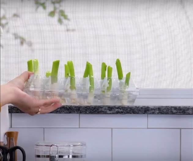 Казалось бы, как ржавые гвозди могут помочь в выращивании растений? Оказывается, очень даже хорошо, поскольку могут их спасти от гибели и даже заставить расти намного быстрее. А еще в хозяйстве пригодятся парочка пластиковых бутылок, скисшее молоко и ненужная кофейная гуща — с ними на садоводческом поприще можно творить настоящие чудеса. 1. Свежая зелень всегда под рукой На кухне такая клумбочка будет смотреться очень даже гармонично. Этот лайфхак просто создан для тех, кто любит свежий зеленый лучок. Чтобы иметь такой у себя на кухне регулярно, достаточно использовать ненужный пластиковый контейнер из-под яиц и немного купленной зелени. Сначала отрезаем перья лука, оставляя белые головки с корешками, а потом ставим их в небольшие отверстия контейнера, которые можно вырезать с помощью канцелярского ножа. Теперь остается следить, чтобы внутри контейнера всегда была вода и немного подождать, пока отрастут новые свежие перья лука. Познавательный факт: Лук — холодолюбивая культура. Продол
