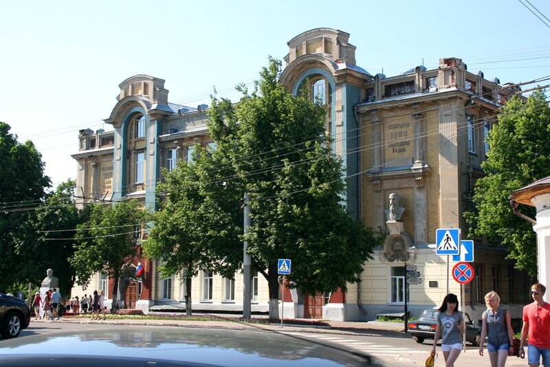 В предыдущих частях я уже говорил неоднократно, что Владимир мне понравился. Хотя не только мне. Судя по количеству торговцев магнитиками, город любим, и самое главное посещаем туристами. И посмотреть там действительно есть на что. В моем списке мест обязательных для посещения значился такой пункт как «памятник дворнику». Вот не нашли мы его. При этом расспросы местных жителей тоже не привели к положительному результату. Зато нашли какой-то дуб с цепью. Стоит он возле Спасо - Преображенской церкви построенной в 18 веке. Тут же рядом инсталляция из бутылок. И самое главное здесь же водонапорная башня, к которым я питаю слабость. В случае с владимирской башней информации в сети валом. Построена в 20 веке и с середины используется как музей. Хотя можно использовать и как смотровую площадку. Честно говоря, что там можно увидеть сквозь зелень деревьев мне не совсем ясно. Куда как лучше вернуться от башни и забраться на остатки вала. Вид на начало Большой Московской улицы.