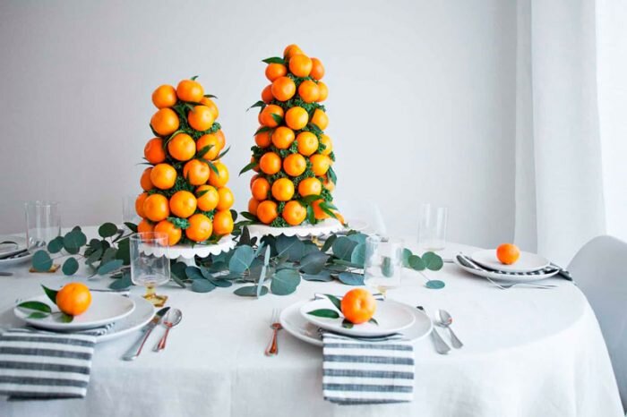 3. Следом мы прикрепляем мандарины к нашей елочке с помощью зубочисток. 4. Наша елочка готова Елочка из мандарин послужит необычным украшением Вашего новогоднего стола