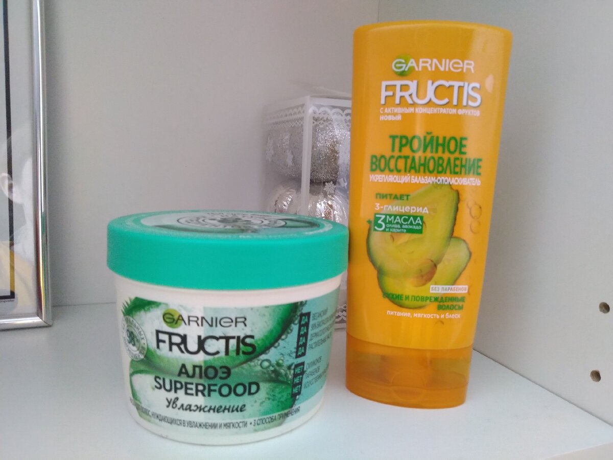Увлажнение Помимо оттеночного бальзама, я использую маску Garnier Superfood Алоэ для увлажнения. Маска раскрывает чешуйки волоса, чтобы их сгладить понадобится бальзам. Подойдет любой, у меня Garnier Fructis тройное восстановление с маслами оливы, авокадо и карите. Для моих сухих, обесцвеченных волос настоящее спасение. В интернет-магазине озон или в магнит-косметик часто бывают скидки на эти продукты. Несмываемый уход Для несмываемого ухода я использую крем Garnier Fructis SOS Спасатель волос 10 в 1. Он питает, разглаживает волосы, является термозащитой. Волосы хорошо расчесываются, не грязнятся и вкусно пахнут. За 400 мл густого крема я заплатила 230 рублей! Хватит на долго. Раньше я пользовалась маслом Pantene Pro-V, но для моих волос его одного было недостаточно. Во время отпуска для защиты от ультрафиолета, соленой и хлорированной воды это масло хорошо подойдет. На отдыхе я пыталась всегда ходить в головном уборе, чтобы волосы не выцвели и не превратились в солому. Для легкого рас