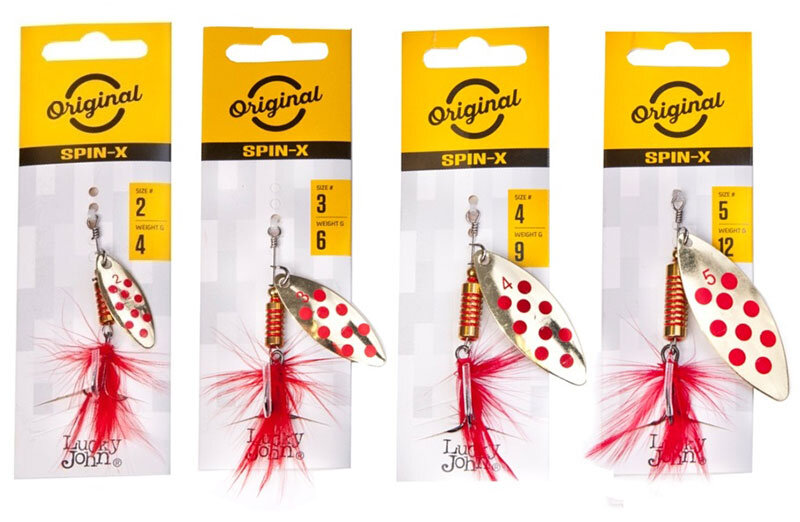 Вращающиеся блесны Lucky John SPIN X собраны по классической схеме — в их конструкции нет ничего лишнего. Попав в воду, лепестки блесен моментально «заводятся» и стабильно вращаются во время проводки. Лепестки сделаны из латуни, имеют надежное защитное покрытие от коррозии никелем, поверх которого нанесено омеднение, золочение или прочное лакокрасочное покрытие. Блесны собраны на нержавеющей пружинистой проволоке. Стабильное вращение лепестка обеспечивает оптимальная форма его поперечного сечения, круглый латунный опорный подшипник и прочная проволочная дужка. Дужка расплющена с торцов, в которых просверлены отверстия. При таком соединении вращение лепестка на оси очень легкое. Грузик цилиндрический, латунный, механически обработанный. Крючок — тройник VMC 7554 (Франция) с привлекательной для рыбы красной мушкой-опушкой. Мушка не только маскирует крючок, но и стабилизирует положение блесны в воде при минимальной скорости проводки. Для ловли окуня, голавля, форели и щуки-травянки лучшим