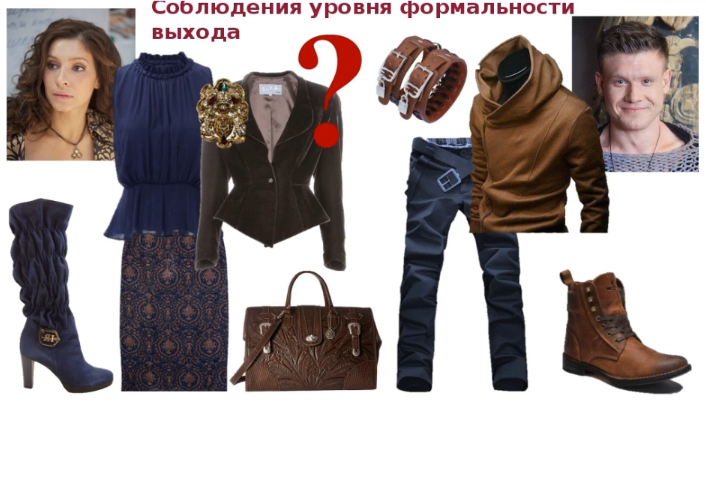 Сейчас давайте резюмируем пути нашего движения. Иногда достаточно понять, что же в образе пары есть общего, и сделав это общим знаменателем, хотя бы отчасти привести образы к единому звучанию. И это уже будет хорошо. Это первый способ. Допустим, если один из партнеров "классика" и "наивная романтика", а второй - "натуральный", "классика" и "драма", то общей для них будет "классика". Соответственно, в каких-то случаях образы чуть "облегчаются", в каких-то - добавляется статусность. Затем идут стилистические приемы по цвету. Они очень хорошо работают в паре и смотрятся замечательно. Можно сыграть на линейности, но в паре это сделать сложнее, потому что мужская линейность в плане одежды менее разнообразна, чем женская. Это у женщин есть юбки: длинные, короткие, пышные, текучие, прямые. Мужская же одежда гораздо более ограничена по форме и пребывает в более жестких рамках, чем женская. Поэтому цвет это самое простое, что мы можем использовать. Однако не обязательно вводить один и тот
