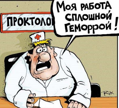 В кабинет хирурга вбегает ГАИшник с вилкой в животе: -Доктор! Помогите! -Не могу. Уже 5 часов. Мой рабочий день закончился. -Ну сделайте же что-нибудь!!! Доктор вынимает вилку из живота и втыкает в глаз: -Идите к окулисту, он принимает до семи..... ------------------------------------------------------------------------- Тесный мир Еба...й помидор, как же все-таки тесен наш мир... -подумал доктор, назначая гаинику по десть клизм в день..... ---------------------------------------------------------------------------- В медицинской академии идут выпускные экзамены. Доцент говорит: "В мешке человеческие органы. Кто на ощупь назовет орган и достанет его, тот сдал. " Один говорит: "Сердце", достает-сердце. Сдал. Другой: "Легкое", достает- легкое. Сдал. Девушка сует руку в мешок и говорит: "Сарделька. "Ей говорят: "Это человеческие органы, вы хорошо подумали? "Она: "Да! "Достает-сарделька. Хирурги переглядываются: "А чем же мы вчера закусывали? " --------------------------------------