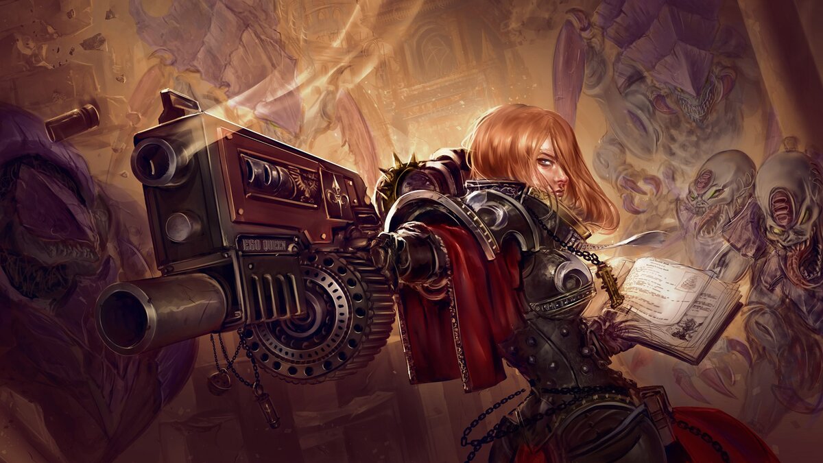 Болтер - это один из самых распространенных видов стрелкового оружия в армии Империума, создающийся на основе СШК - Стандартных Шаблонных Конструкций (Прим. ред.: Ну как автомат Калашникова). Основной боеприпас болтера - реактивные снаряды, которые также могут различаться по типу, например ядовитые или зажигательные, такие используются в отрядах Караула Смерти (Deathwatch). Но для Адепта Сороритас, болтер - это ещё и дар Императора, с помощью которого они могут защищать человечество и нести смерть его врагам. Это первое оружие с которым ты будешь учиться обращаться в Схола Прогениум - приюте и школе для сирот. Обучение стрельбы из него проходят все сестры без исключения, даже не боевых орденов, таких как госпитальер, диалогус или фамулус. Несмотря на то, что механизм работы болтера это СШК, сам болтер имеет множество модификаций и "Годвин-Де'Аз" одна из них. Она отличается уменьшенными габаритами, что существенно влияет на вес оружия, при этом оптические прицелы, доп.подвесы для пуска