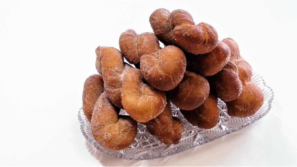 Пышные пончики необычной формы, мягкие и воздушные внутри, с хрустящей корочкой снаружи. Вкусно, просто и всегда хорошо к чаю! Тесто для пончиков готовится на дрожжах и получается пузырчатым, а пончики еще больше раздуваются при жарке, образуя аппетитную корочку. Ингредиенты: Мука - 470-500 г + для работы с тестом Молоко - 250 мл Яйцо - 1 шт. Дрожжи сухие - 11 г Сахар - 2 ст. л. Соль - 0,5-1 ч. л. Масло сливочное - 40 г Масло растительное - для обжаривания и смазывания чаши Сахарная пудра (или сахар+корица) - по вкусу Приготовление: 1. Смешать дрожжи с тёплым молоком и сахаром. 2. Оставить на 5-7 минут, чтобы дрожжи активировались. Затем перемешать до однородного состояния массы. 3. Влить растопленное сливочное масло (оно должно быть тёплым, но не горячим!). Добавить соль и яйцо. Перемешать. 4. Постепенно ввести сначала 400 грамм муки, замешивая тесто лопаткой в чаше. 5. Когда станет сложно мешать лопаткой, переложить тесто на рабочую поверхность и, подсыпая еще 70-100 грамм муки, з