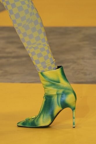 Квадратный носок – хит сезона осень-зима 2019-2020. Этот «пламенный привет» из 60-х и 90-х годов прошлого столетия стилисты усовершенствовали и заметно «приукрасили», добавив ярких принтов и модных аксессуаров. Также на показах ведущих дизайнеров, например, Chloé — фигурировала обувь с необычным каблуком и вязанным манжетом.