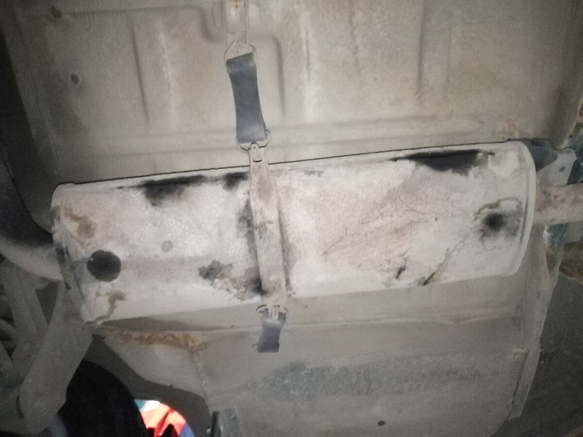 И когда начали вытаскивать негодный глушитель из под машины он развалился:) На столько сильно он прогорел.