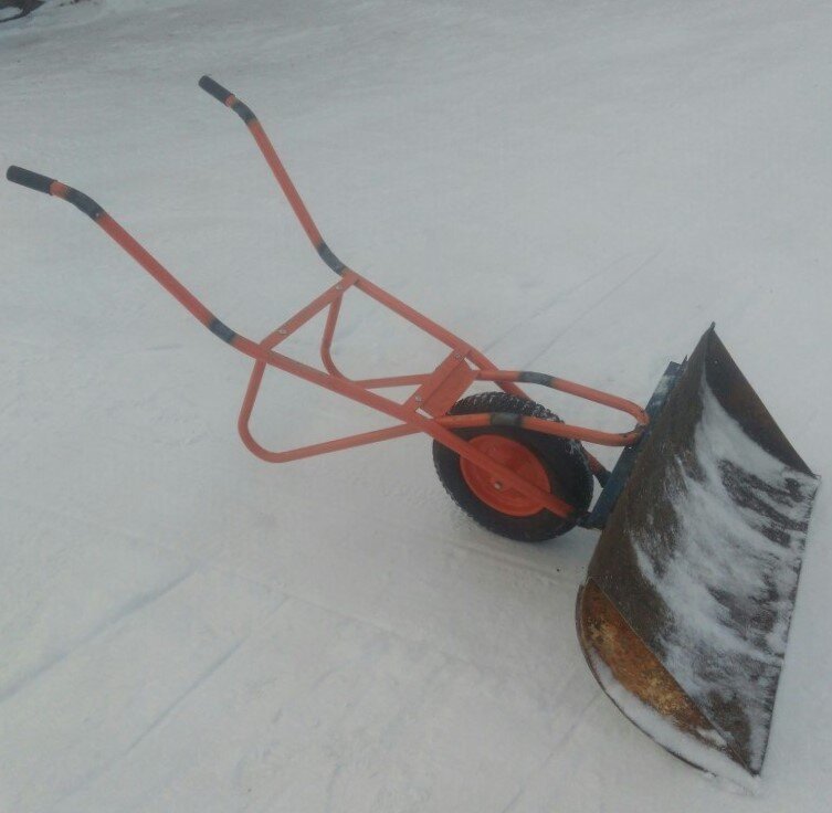 Итак, на дворе зима и многие владельцы частных домов уже начинают махать лопатами по утрам, расчищая дорожки от снега. Конечно при небольших осадках зимой и частой уборке вполне достаточно и одной лопаты, но если очистка от снега нужна на большой территории, то можно соорудить приспособление которое значительно облегчит ваш труд. У каждого в хозяйстве найдется тачка, на которой летом приходилось что-нибудь перевозить, вот как раз из нее и можно сделать отличную лопату). Конечно для изготовления нужно обладать неким инструментом и навыками, но если нет ни первого ни второго - всегда можно попросить кого-нибудь сделать или просто заказать. Снимаем со старой тачки верх, он легко откручивается. Далее варим сами или заказываем импровизированный ковш. Кстати если его сделать съемным, то можно использовать телегу круглый год и летом и зимой. С помощью такого приспособления можно быстро и не напрягаясь очистить скажем стоянку под автомобили, а также перемещать излишки снега в кучу за забор.
