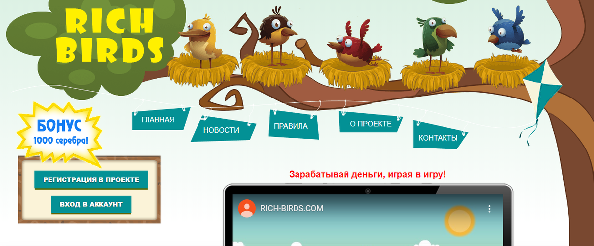 Richbirds.com - игра с выводом денег, где каждый собирает яйца с кур которых покупаешь. И за каждую минуту вы собираете яйца, за которые вы получаете прибыль. Игра появилась в 2014 году, за своё время этот сайт набрал 3824746 человек, выплатил средств 51446869 р., а в резерве проекта ещё 113454740 р. Почему я не рекомендую играть в эту игру? Как только вы зайдёте на этот сайт, то появится окно с выгодными предложениями типо. там 200% к вашим пополнениям, это сделано для привлечения новых пользователей, также на проекте есть скрытые платёжные баллы. Которые так просто вам не дадут, вывести деньги с проекта. Баллы можно набрать за счёт или своих рефераллов, которые тоже должны пополнять баланс, либо со своих же инвестиций в проект, с которых вы тока получите 30% от ваших вложенных средств. К примеру, вы пополнили баланс на 1000 руб., сможете вывести только 300 руб. заработанных средств, это как раз 30%, а остальные вы 70% вы не получите, вам придётся приглашать рефераллов и много, что