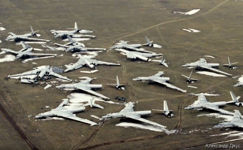 В конце 1970х годов СССР и США подписали соглашение по ограничению стратегических вооружений. Это соглашение сильно затронуло Дальнюю авиацию. Предстояло вывести из боевого состава около двух десятков стратегических бомбардировщиков - носителей ядерного оружия. Не просто вывести, а разрезать и представить США доказательства уничтожения. Планировалось сделать это на открытой местности, чтобы американцы смогли снять со спутника расчлененные самолеты. Вот что рассказывает фотограф Александр Джус про съемку уничтоженных самолетов: "На одном из военных аэродромов ко мне подошел майор, представился командиром отдельного батальона аэродромно-технического обеспечения и рассказал историю о том, как они уничтожают самолеты. Полностью исправные самолеты, взлетают с основного аэродрома, садятся на грунтовом, им отрубают хвост и крылья. Делается это для того, чтобы американцы из космоса смогли сфотографировать, что мы уничтожили самолет, который может нести ядерное оружие." Александр, вспоминае