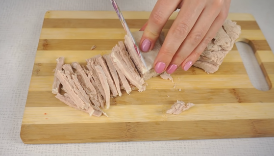 Всем привет!! Сегодня будем делать необычный салат "РАФАЭЛЛО"!!!! ЧТОООООО? Скажете вы, заинтересовало? Тогда смотри этот невероятный и вкусный рецепт салата до конца!!! Ингредиенты: мясо (свинина или куриное филе отваренное) яйца 6 шт. сыр майонез маринованный лук масло подсолнечное (для жарки) соль, перец, горчица, чеснок. 1 Тонкой соломкой нарезаем мясо 2 Обжариваем со всех сторон мясо на масле. Добавляем: соль, горчицу, перец. 3 Мясо выкладываем на тарелку где будем делать салат. 1 слой Обжаренное мясо. 2 слой маринованный лук. Делаем сетку из майонеза 3 слой разрезаем яйца пополам, желток и белок разъединяем. В желтки добавляем чеснок, соли, перчим. Разминаем вилкой, добавляем 2 с.л. майонеза. Перемешиваем. Готовую смесь кладём в белки. Оставшуюся смесь размазываем по салату. Белки со смесью аккуратно выкладываем на салат. 4 слой сыр натираем на мелкой тёрке. Обмазываем весь салат майонезом. Сверху посыпаем тёртым сыром. Вот такой быстрый и до безумия вкусный салат у нас