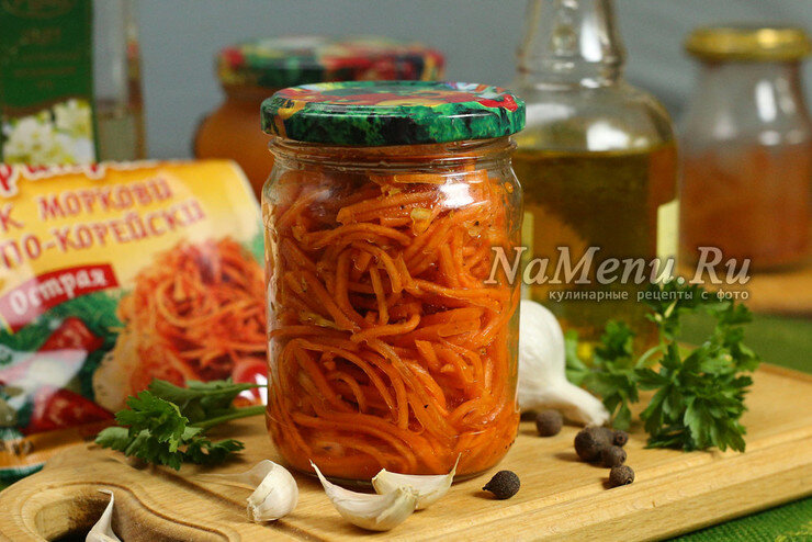 Ингредиенты: 🥕Морковь, чеснок и лук чистим, промываем. Лук режем полукольцами. Морковь шинкуем на корейской терке 🥣Для соуса-маринада смешиваем приправу для моркови, паприку или чили, соль и сахар, добавляем пропущенный через пресс чеснок 🥄Вливаем уксус, перемешиваем до увлажнения всех специй и растворения кристаллов соли и сахара ⏰Морковь перекладываем в миску с маринадом, перемешиваем. Оставляем минут на 15-20 🔥Лук жарим на сковороде с маслом на сильном огне до зарумянивания ✔️Лук выбрасываем, а масло с него вливаем в морковь, перемешиваем ❗️Баночки обязательно стерилизуем: в духовке, микроволновке или над паром. Крышки моем, кипятим пять минут ➡️Заполняем банки морковью. Заливаем образовавшимся маринадом и сразу закручиваем крышками https://namenu.ru/10831/Morkovq_po-korejski_na_zimu_bez_sterilizacii/