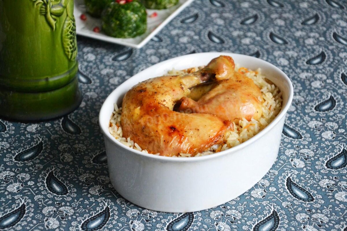 Каждая хозяйка в своей кулинарной копилке сохраняет быстрые, простые, сытные блюда. Они часто выручают, когда вернувшись уставшей с работы, нужно быстро накормить домашних. Окорочка с рисом, запеченные в духовке, именно такое блюдо. Рецепт из разряда «ленивых». Гарнир и мясо готовятся одновременно, что существенно облегчает задачу, экономит время и силы. Еще один плюс. Блюдо недорогое, продукты доступные. И самое главное. Блюдо очень вкусное! Рис получается рассыпчатым, пропитывается мясными соками. Специи придают неповторимый, аппетитный аромат. Пробуйте! Время приготовления 1 час 30 минут Калорийность 128 ккал/100 г Ингредиенты (4 порции) · морковка – 1 шт; · вода (теплая) – 500 мл; · рис – 200 г; · свежемолотый перец – 0,5 ч. л; · куриные окорочка – 500 г; · соль – 1 ч. л; · сухие специи (для курицы) – 1ч. л Подготовка ингредиентов Промываем рис несколько раз, чтобы вода стала прозрачной. Заливаем холодной водой. Оставляем на 20 минут. Сливаем воду. Моем курицу. Обсушиваем бумажн