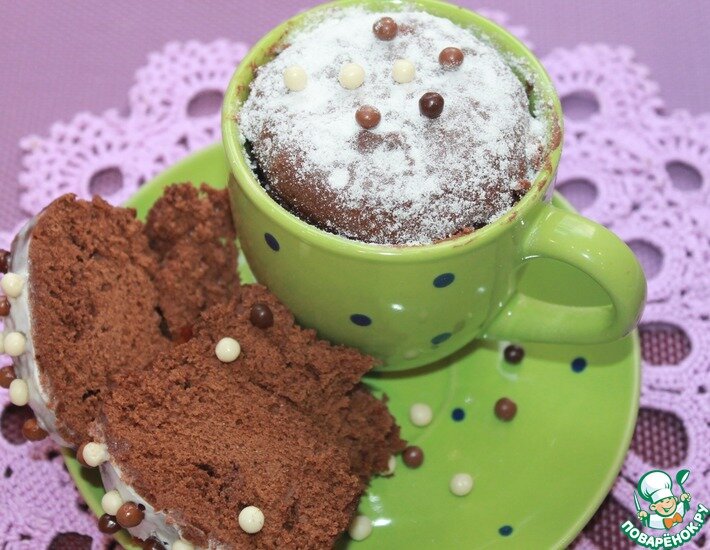 Самая вкусная еда не обязательно должна готовиться долго и сложно. Предлагаю простой кулинарный рецепт из серии "палочка-выручалочка" - шоколадный кекс в чашке за 5 минут. Всё, что необходимо сделать — это замесить очень простое тесто, залить его в две чашки и поставить на 3 минуты в микроволновую печь на максимальную мощность и вы получите вкусный десерт для неожиданных гостей или просто в те моменты, когда совсем нет времени на приготовление, например, утром перед работой или школой. Ингредиенты для «Кекс в чашке "Шоколадное лакомство"»: Время приготовления: 5 минут Количество порций: 2 Рецепт «Кекс в чашке "Шоколадное лакомство"»: Количество ингредиентов указано на две чашки объемом 200мл.