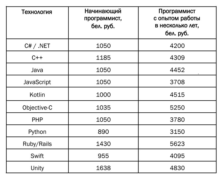 Для начала предлагаем ознакомиться со средними зарплатами, которые платят разработчикам в компаниях-резидентах Парка высоких технологий.
