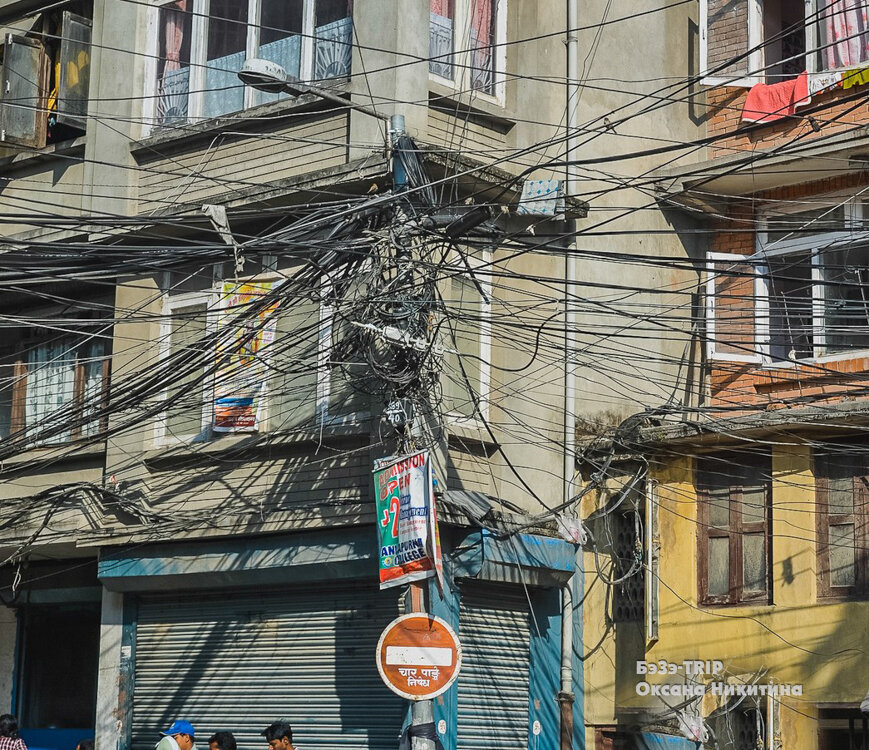 В чем же дело, почему такая реакция? Все потому, что если посмотреть наверх в черте города в Непале, вы ужаснетесь от обилия проводов, намотанных на столбы, друг на друга, окружающие здания.