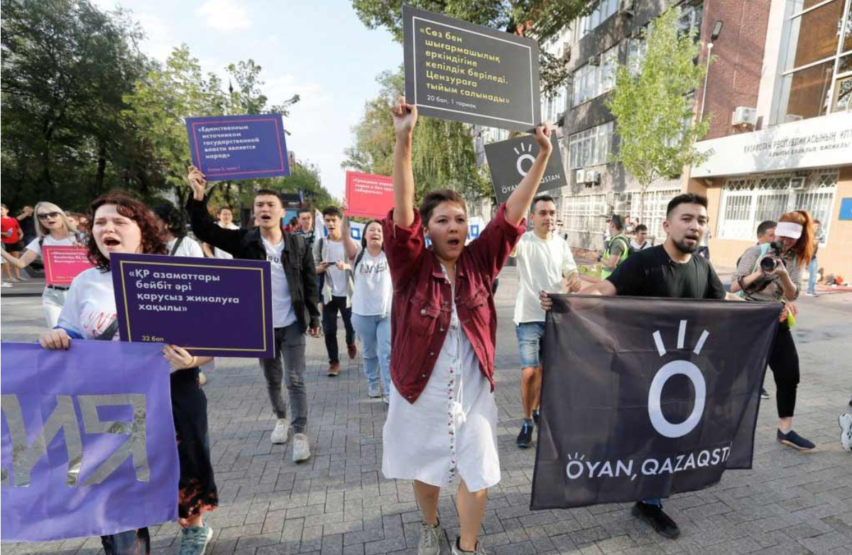 Символично, что 5 июня, то есть за несколько дней до голосования на досрочных президентских выборах, было объявлено о создании движения «Оян, Казахстан» («Пробудись, Казахстан»). В его руководстве мы видим Асем Жапишеву, Касымхана Кппарова, Лейлу Махмудову, Димаша Альжанова – все они в разное время были тесно связаны с Фондом Сороса, USAID, Национальным республиканским институтом и прочими организациями, финансируемыми из средств Государственного департамента США, а также «рыцарями плаща и кинжала».