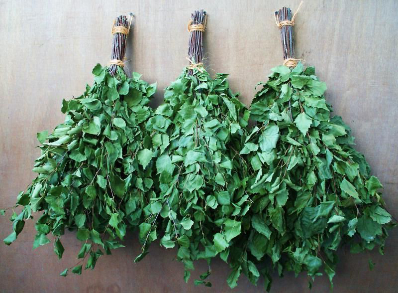 Русичи с древних лет мылись в жаркой бане. В то время европейцы не имели привычку даже просто мыться, а наши далёкие предки в бане не только очищали тело от грязи, но и умело использовали её для лечения. Виды банных веников В бане обязательно ходили с веником. Он был связан из разных растений. Веник для бани следует взять от 40 до 75 см, с ручкой около 15 см. Правильно высушенных листья должны быть насыщенно зелёного цвета без желтизны. 1. Берёзовым веником можно париться 1-2 раза. Он омолаживает и тонизирует кожу. 2. Веник из дубовых веток дольше сохраняет тепло, его можно использовать до трёх раз. 3. Веник из эвкалипта приятно пахнет, лечит любое простудное заболевание, в том числе насморк и больное горло. В бане распаренный эвкалиптовый веник следует прижать к лицу и дышать носом в течение пяти минут. Только его можно использовать лишь один раз. 4. Веник из стеблей горькой, метельчатой, обыкновенной либо лимонной полыни. Не каждый человек может париться им из-за запаха. Поэтому