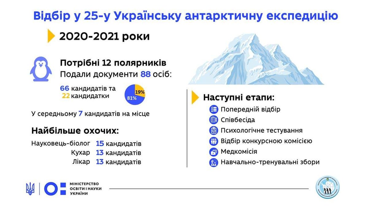 Национальный антарктический научный центр Украины в эти дни проводит первый этап конкурса для желающих отправиться в 25-ю Украинскую антарктическую экспедицию.