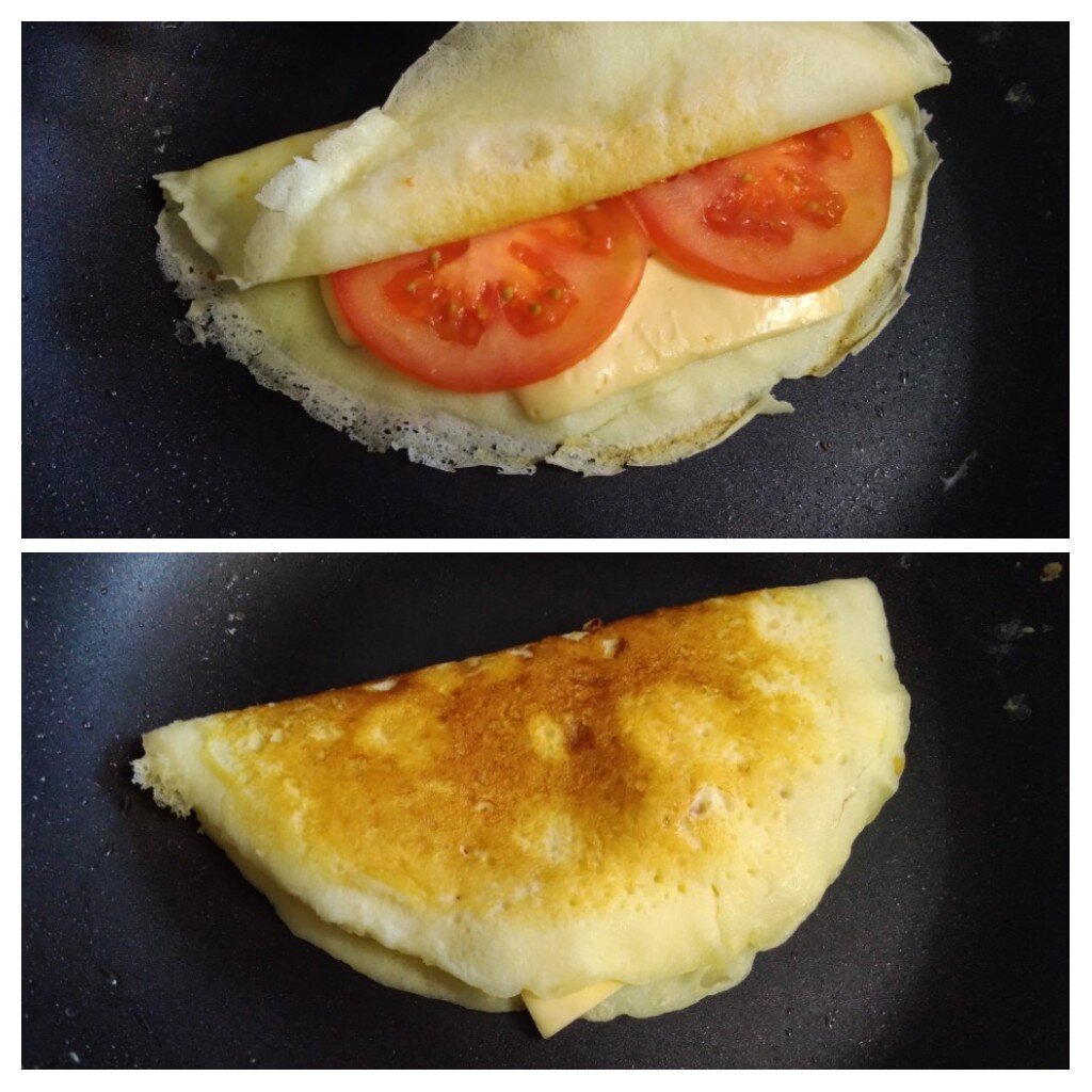 Рисовые блины настоящая находка! Рисовая мука богата витаминами группы В и не содержит глютен. Приготовить вкусные, тонкие и низкокалорийные блинчики не составит труда. Ингредиенты: Рецепт приготовления: Взбейте яйца с солью и сахаром до получения пены. Добавьте 2 стакана молока и растительное масло, взбейте. Добавьте стакан муки, перемешайте и взбейте. Особенность рисовой муки в том, что она оседает на дно миски, поэтому каждый раз следует перемешивать. Добавляем на разогретую сковороду растительное масло, обжариваем с двух сторон. Начинка: У меня сыр с помидором. Выкладывайте сыр и помидор на блин, сворачивайте пополам и подогревайте до плавления сыра. Сыр лучше брать сулугуни или моцареллу. Пробуйте разные вариации, это может быть банан с творогом, ветчина с сыром или банан с шоколадом. Блины получаются очень сытными и вкусными. Я уверена, что вам понравится. Приятного аппетита!