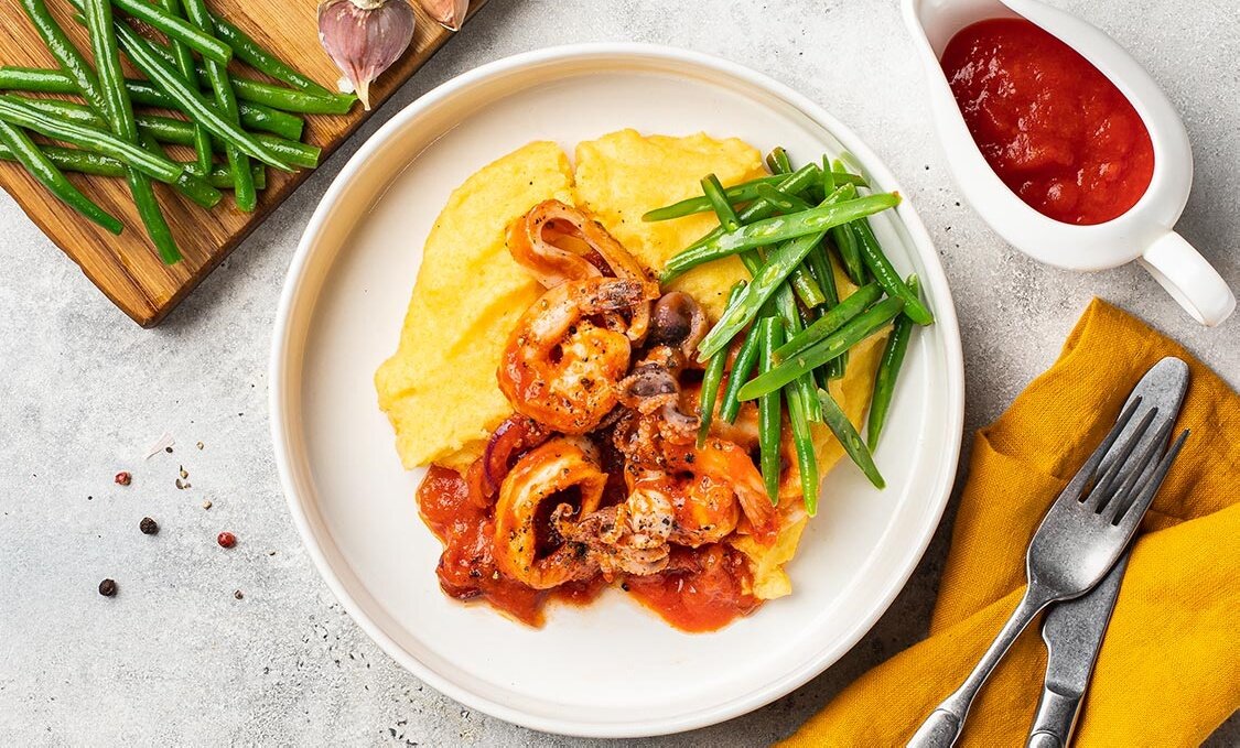 Предлагаем попробовать знаменитые морепродукты по-итальянски с полентой. Получается очень вкусно!👌🏻😘⠀⠀