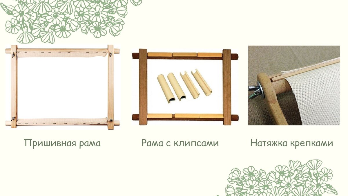 Желательно знать свои предпочтения, касательно размеров вышивки. Рама должна быть немного больше ткани, на которой вы вышиваете.