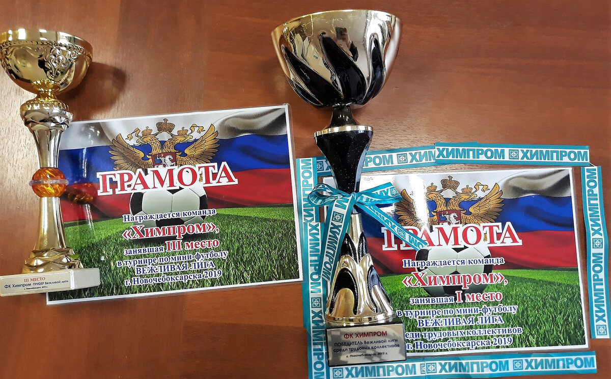 10 ноября в стенах спортшколы № 1 г. Новочебоксарска состоялось награждение победителей и призеров городского турнира по мини-футболу «Вежливая лига». Команду «Химпрома» торжественно наградили двумя грамотами и кубками турнира: за I место - среди трудовых коллективов и III место - между городскими командами. Напомним, что в этом сезоне в соревнованиях приняли участие 10 сборных команд города. По итогам всего турнира в девяти играх химики выиграли семь матчей, один раз сыграли вничью. Среди всех команд они отличились самым большим количеством забитых голов. Копилка спортивных побед завода пополняется заслуженными наградами и служит стимулом для дальнейших свершений.