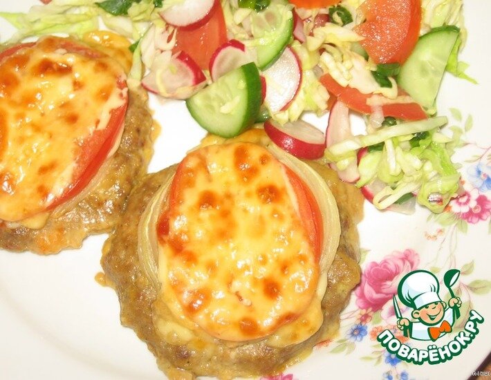 На мясную лепешку выкладываем: кетчуп - лук - майонез - помидор - майонез - сыр. Кружочек перца вдавливаем вокруг начинки и саму начинку тоже легонько внутрь примять. В разогретую духовку - 180*С 30 мин. 3) Приятного аппетита!!! Если вам понравилось, то ставьте лайк, подписывайтесь на канал и делитесь запи