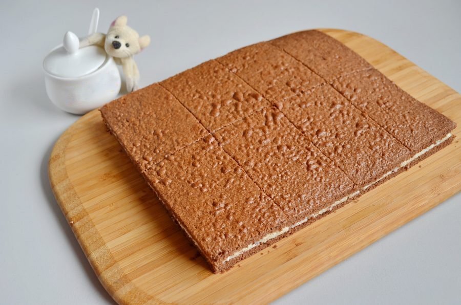 Детское пирожное "Молочный ломтик" Поделись рецептом 📌 Ингредиенты: Яйцо — 4 шт. Сахар — 3 ст. л. Молоко — 20 мл Растительное масло запаха — 100 мл Мука пшеничная — 4 ст. л. Мед — 2 ст. л. Какао-порошок — 2 ст. л. с горкой Разрыхлитель теста — 1 ч. л. с горкой Сметана в крем — 100 г Молоко в крем — 50 мл Сгущенка в крем — 100 г Мед в крем — 1 ст. л. Желатин в крем — 12 г Ванилин или ванильный сахар в крем — по вкусу Количество порций: 8 шт. Приготовление: 1. Разделите белки и желтки. К последним добавьте сахар и миксером разотрите до посветления массы. 2. Белки взбейте до устойчивый пиков. 3. К желткам добавьте молоко, растительное масло, мед. Перемешайте хорошо, чтобы мед полностью растворился. 4. Введите сухие ингредиенты: муку, какао, разрыхлитель. Перемешайте, чтобы не было комочков. 5. Теперь с помощью лопатки введите в тесто взбитые белки. Вводите осторожно, небольшими порциями. 6. Тесто готово! Оно воздушное, ароматное. Прогрейте духовку до 180 ºC. Тесто разделите на две