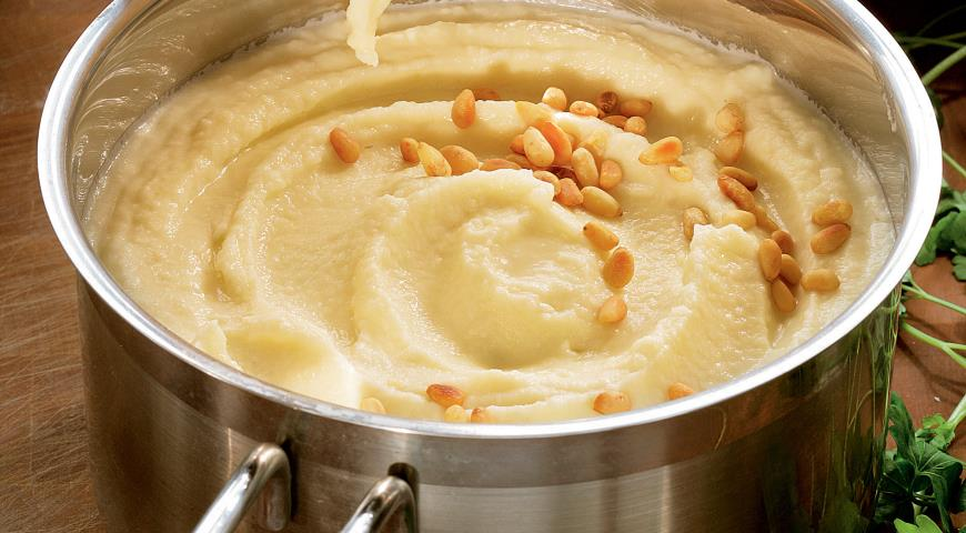 Если пюре получается слишком густым, влить в него немного сохраненного картофельного отвара – до получения нужной консистенции. Припра