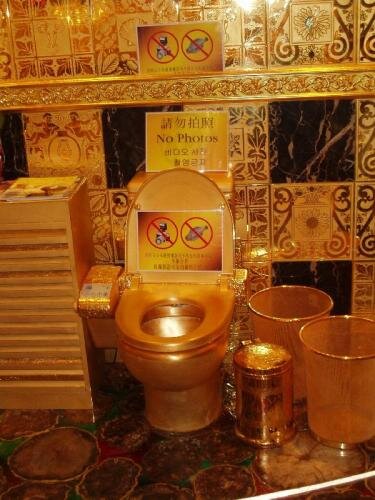 На что только не идут владельцы разных заведений для привлечения клиентов. В мире интернета и соц сетей, selfie в необычном месте пользуется невероятной популярностью, люди готовы рискнуть жизнью ради оригинальной фотографии, чтобы получить заветные "лайки". Зачастую этим "необычным" местом становится общественный туалет. Первая часть с туалетами до сих остаётся одной из самых просматриваемых (её можно почитать тут) поэтому мне захотелось поделиться с ещё шестью креативными уборными. Итак топ самых заветных, для селфи-маньяков, туалетов в мире: На 6 месте Swisshorn gold palace, который находится в Гонконге, Китай. Туалетная комната расположена в отеле, который выполнен полностью из золота. Придумала его некая ювелирная компания, дабы показать свое мастерство. Потрачено было более 50 миллионов долларов. В этом отеле можно жить, всего за каких то 25 тысяч долларов, но если вдруг нет таких денег, а фото в таком толчке очень хочется, то можно прогуляться и сфотографироваться за 3 доллара.