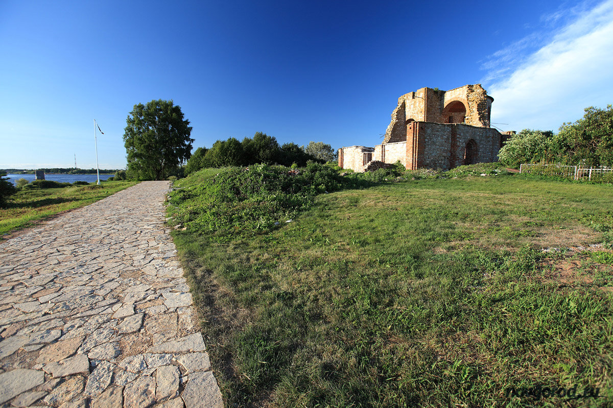Богатое место Городище! Кругом синие, заманчивые дали. Темнеет Ильмень. За Волховом – Юрьев и бывший Аркажский монастырь. Правее сверкает глава Софии и коричневой лентой изогнулся Кремль. На Торговой стороне белеют все храмы, что "кустом стоят". Виднеются – Лядка, Волотово, Кириллов монастырь, Нередица, Сельцо, Сковородский монастырь, Никола на Липне, за лесом синеет Бронница. Всё, как на блюдечке за золотым яблочком.