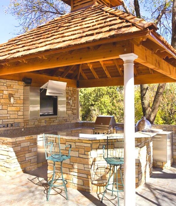 Это один из не менее важных этапов строительства. Из чего строить кухню на улице? Пожалуй, не из дерева. Потому как, оно требует большого ухода, и как бы оно не было обработано, со временем быстро приходит в негодность.