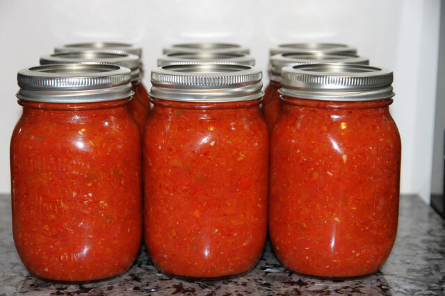 Итак, для приготовления нам понадобится: -5 кг перца красного болгарского -2 кг помидор -500 гр чеснока через мясорубку -1 ст.л растительного масла -5 шт. горького стручкового перца -соль, сахар по вкусу