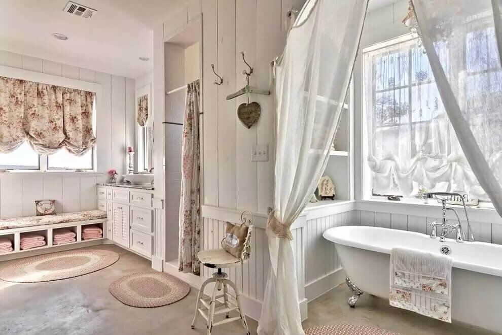 Даже идеально обставленная ванная комната может выглядеть колхозно, если не позаботиться о подборе полотенец и способе их хранения. Если вам нужно купить декор в ванную комнату в стиле Прованс или шебби шик, стоит отдать предпочтение полотенцам с цветочными мотивами на светлом фоне. Они добавят свежести и будут смотреться мило и романтично.