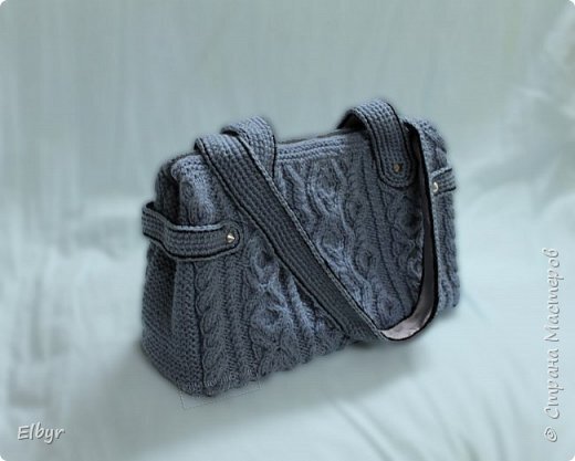 Размеры: 30*21*10. Длина ручки: 55 см. Форму держит (на фото пустая сумка). Схемы: основной узор и косы по бокам Вяжем по схеме 2 полотна (перед и зад сумки). Далее платочной вязкой вяжем вытянутый прямоугольник 75 *10 см. Это у нас будет дно и боковинки сумки.Детали стачиваем и прошиваем. По бокам сверху боковинки остаются 1-1,5 см на подгиб. Из изолона (подкладывают под ламинат) вырезаем продклад по длине и ширине наших деталей (боковинки, дно – сделала двойным, на основное полотно – перед и зад). И все прошивается. Работу выворачиваем. Шьем подклад: из двух прямоугольников размером примерно 43*28. По желанию можно пришить кармашки для ме