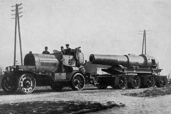 Всего выпущено: 150? Экипаж: 2 Колесная формула 4х2, электротрансмиссия Высота колеса: 1050 мм Двигатель: Austro-Daimler , 6-ти цилиндровый рядный с водяным охлаждением, 150 л.с., генератор электрический 93Квт Максимальная скорость 17 км/час В 1907-1908 гг. Австро-венгерский Генеральный штаб поставил перед заводом Шкода требование разработать и произвести сверхтяжелую гаубицу способную пробить палубную броню самого современного линкора - английского Дредноута. Стрельба должна была вестись с закрытых позиций навесным огнем. Ствол гаубицы должен был быть смонтирован на каретке с поворотным столом с бронированным поворотны