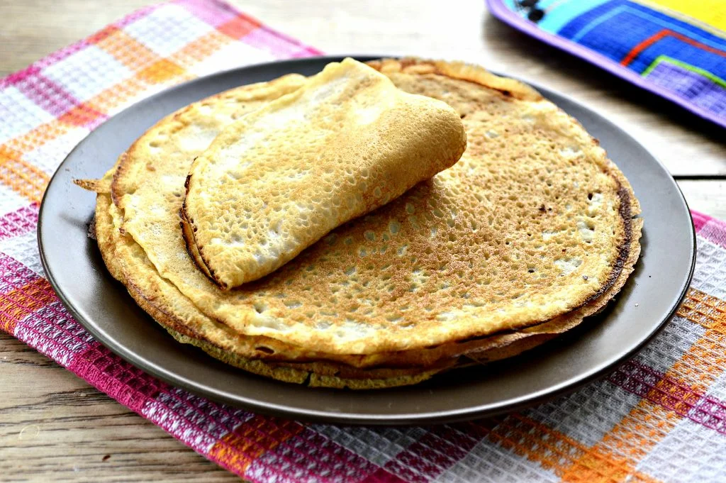 Всем привет !сегодня я покажу вам как можно приготовить быстро и очень вкусно блины на воде возьмем 3 яйца 2 чайные ложки сахара и пол чайной ложки соли все это хорошо перемешаем если вы хотите сладких блинов добавки больше сахара муки возьмем 7 столовых ложек с горкой добавим к ним пол чайной ложки разрыхлителя и все хорошо перемешаем добавляем нашему cookies яичной массе и замешиваем наше тесто добавляем пол литра теплой воды вода должна быть немного теплее комнатной температуры все нужно очень хорошо перемешать вначале образуется комочки но это не страшно они легко растворяются удобнее всего перемешивать венчиком но если его нет можно просто вилкой или ложкой добавим 2 столовые ложки растительного масла тесто получается довольно таки жидким это нормально начали сковородку немного смажем растительным маслом процессе жарки этого делать больше не нужно блины очень хорошо отходят от сковородки этого количества продуктов у меня выходит порядка 16 и 18 блинов их можно кушать с разной