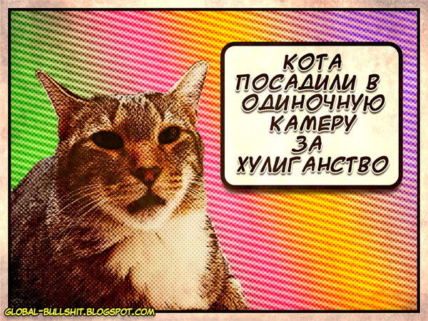 Досталось котейке не просто так. Этот шерстяной говнюк, по ночам, выпускал из клеток своих четвероногих друзей. При чем - как кошек, так и собак.