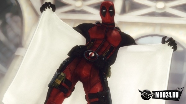 Супер-геройский костюм Дэдпула, выполнен довольно качественно, чтобы он появился в игре воспользуйтесь консолью или AddItemMenu.