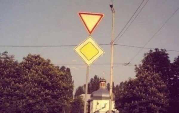 Друзья, а давно ли вы заглядывали в правила дорожного движения? А еще мне интересно, заглядывали вообще туда когда-нибудь дорожные службы, отвечающие за правильную расстановку знаков?! Подборка "приколов" с дорожными знаками. Поехали! Судя по этой фотографии, видимо, решили сэкономить на еще одном столбе: а что, так тоже сойдет! Тут решили повторить для тех, кто с одного раза не понимает! А тут, похоже, на усмотрение водителя: можно выбирать какой больше нравится! А это знаки Ни-Ни: ни туда, ни сюда нельзя! Ну тут без комментариев. Кирпычъ. А что, все очень даже понятно! Упс, ошибочка вышла Ну что же, видимо, у кого-то наболевшее! И это тоже у кого-то наболевшее! Если Вы любите путешествовать, в других странах мира можете повстречать знаки, которых в ПМР нет. А зря. Вот, например, такой очень актуален для нашего лета! И такой тоже оооочень актуален! А это, похоже, загадка на сообразительность!