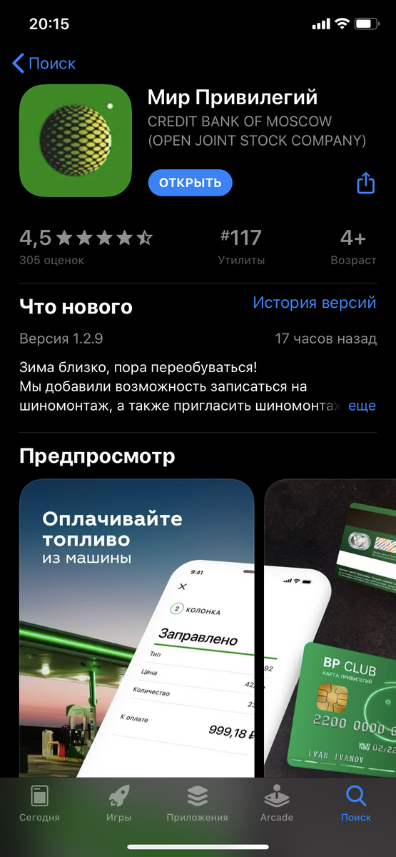 Почему именно ВР? Всегда пользовался этой сетью, устраивала система лояльности и начисления баллов. Скачиваем приложение "Мир Привилегий" от "МКБ". Затем привязываем свою карту, для оплаты заправки через приложение. Если у вас другой банк, не стоит переживать, комиссии за оплату нет. А также не забудьте привязать карту лояльности “BP”. Приезжаем на АЗС, выбираем любую колонку, заправщику называем какое топливо и его количество заправить. Затем сканируем QR-код возле колонки, и ждем... По итогу должно высветиться количество топлива, его октановое число и сумма оплаты. Нажимаете оплатить, затем заправщик проверит, прошла ли оплата, также можете дать "на чай" и все, можно уезжать. Чек приходит в смс, либо в “Viber”. Баллы начисляются стандартно. Самое главное это происходит быстрее, чем стоять в очереди в кассу, и не надо выходить из автомобиля в мороз, который скоро наступит. Приложение такое удобное, как у Ашана.