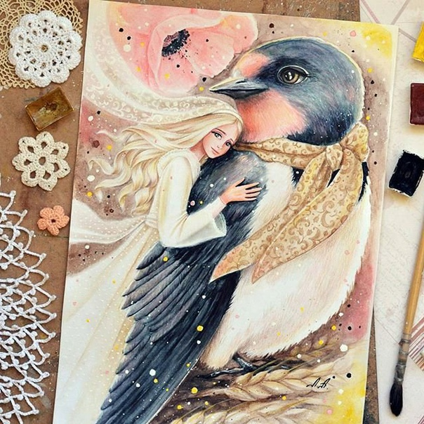 Ветер кашляет жутким холодом, В чаще леса – осенний стон, Бедной ласточке словно молотом Бьет по крыльям дрожащим он. Пала на земь она, и капельки Грустных глаз затуманил мороз… Только кто как теплом кровательки, Всем, что есть у самой до капельки, Слыша сердца стук: та-та-тательки…, - К ней прижался душой до слез?.. ** А Дюймовочка скоро ласточку Отогреет теплом своим, Встрепенется, вспорхнет милашечка, Скажет радостно ей: полетим!.. А Дюймовочка скоро пташечку Отогреет душой своей, Встрепенется, вспорхнет милашечка, - Полечу я смеясь за ней! *** Черный крот роет глубже от солнца прочь Под землею тюрьмою сырой, Чтоб Дюймовочку бедную в вечну ночь Увести навсегда за собой. И советы мышиной мудрости: «Приживешься – и стерпится все!..» И холодное небо в хмурости, И осенней травы сутулости, И прощального солнца жмурости Больно бедную ранят ее. ** Но Дюймовочка скоро ласточку Отогреет теплом своим, Встрепенется, вспорхнет милашечка, Скажет радостно ей: полетим!.. А Дюймовоч