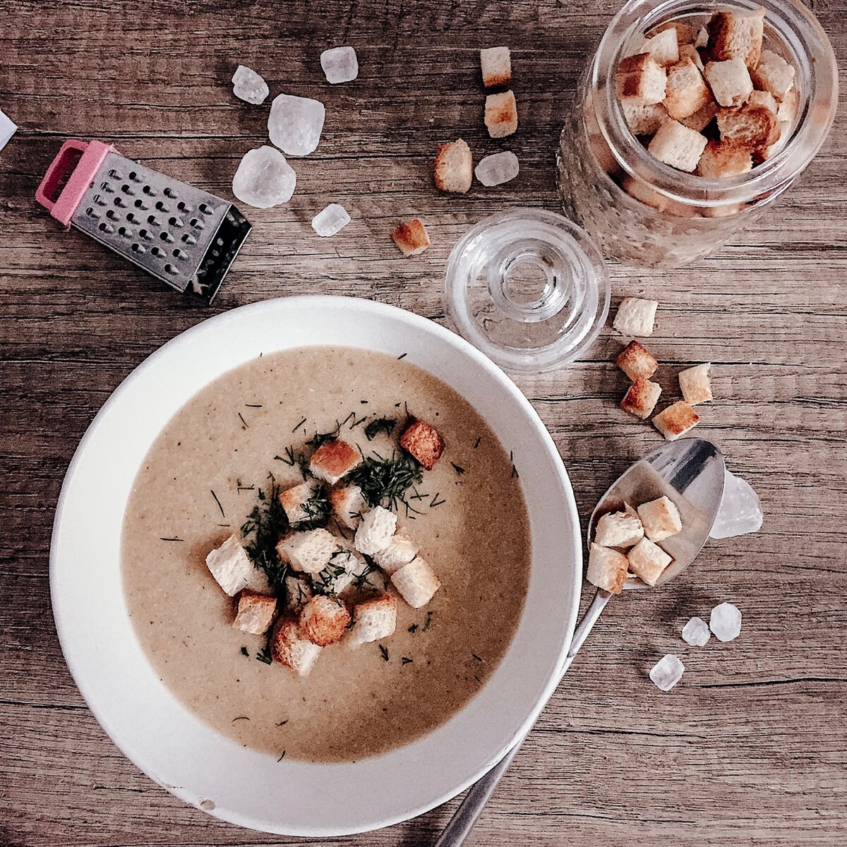 Идеально вкусный и идеально быстрый суп. Основные ингредиенты это куриный бульон и картошка)) Остальные ингредиенты - любые овощи в холодильнике, например: кабачки морковь, лук, броколли, цветная капуста, зелень, в общем все, что найдется. Бульон. Супы я варю на втором бульоне, то есть после первого закипания, я сливаю воду, промываю мясо, заливаю холодной водой и снова довожу до кипения. Чтобы бульон был насыщенный и прозрачный, во второй бульон я добавляю 1 морковку и половину луковицы. После того как закипела вода добавляем крупно порезанную картошку, остальные овощи. Варим до готовности минут 10-15. Остужаем, блендерим. Готово! Суп без поджарки, поэтому это прекрасный рецепт для детей от года! Я всегда дома держу сухарики, естественно из домашнего хлеба)) Они и украсят наш суп-пюре и аппетита придадут. Измельчаю я блендером порционно, а не все сразу! Приятного аппетита)) PS: интересный факт: Самый дорогой 💶 в мире суп, который считают деликатесом в Малайзии, Вьетнаме и Китае, н