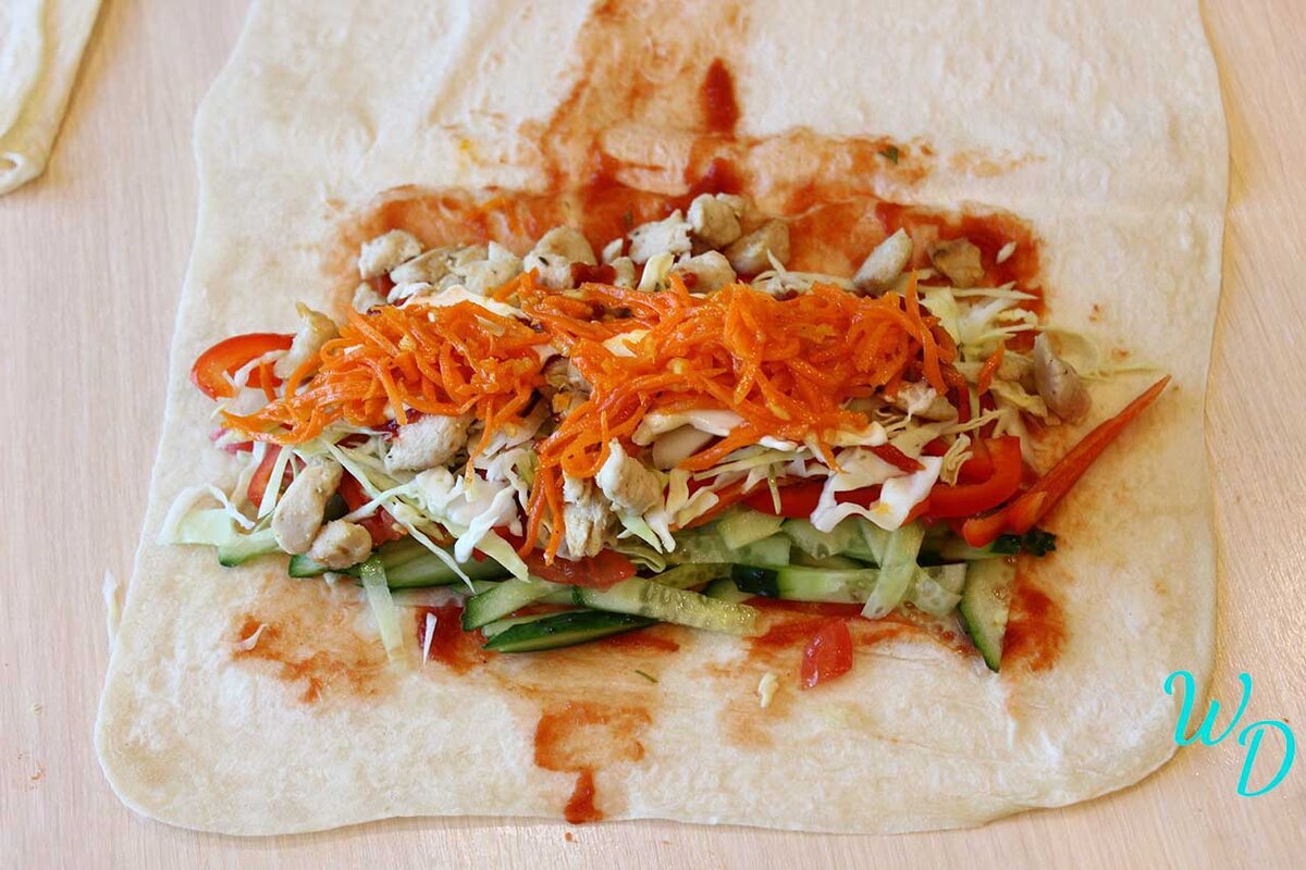 Всем привет ! Добрый день, друзья! Сегодня по плану - шаурма. Первым делом подготовим мясо. Мы будем использовать курицу, это проще всего. На две шаурмы достаточно половины грудки. Отделяем все лишнее - жир, прожилки. И режем небольшими полосками, солим и перчим по щепотке. Желательно брать бедра, поскольку филе может оказаться довольно сухим. Но и оно тоже подойдет. В хорошо прогретую сковороду отправляем мясо. По желанию можно вначале добавить 1 ст. ложку растительного масла. Спустя минуту мясо будет легко отделяться от сковороды. перемешиваем его. Мясо даст сок, поэтому готовим до испарения всей жидкости. По окончании накроем крышкой. Пока мы будем готовить другие продукты, мясо дойдет и хорошо пропариться. Дальше приготовим соус. Смешаем три столовые ложки майонеза и столовую ложку сметаны. Если майонеза вдруг не оказалось под рукой, вы можете легко приготовить его сами. Ссылка на рецепт в описании под видео. Это займет всего минуту. Чистим и мелко режем один зубчик чеснока. Доб