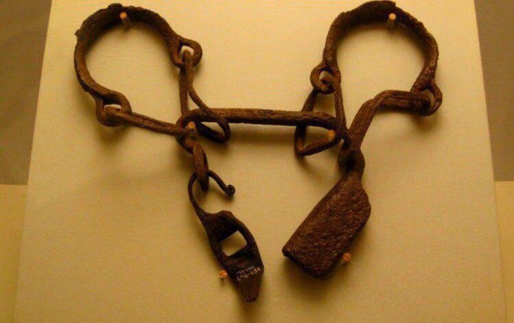 Римские кандалы рабов из музея Севильи в Испании и музея Норвича в Норфолке, Англия. Подобные находки характерны для обширных территорий Западной Римской империи. Многочисленность и характер находок могут говорить и о том, что какая-то часть рабов в сельской местности носила кандалы постоянно во время работы в поле. Известно, что рабов в Риме было куда больше, чем свободных граждан, но рабы не носили кандалы постоянно, согласно письменным источникам, скорее это было средством наказания или принуждения к повиновению. Да уж, такое ужасающее наказание не могло не заставить страшиться оскорбить своего господина. В принципе, глядя на эти кандалы, легко понять, почему рабов в Риме можно было узнать по черной полосе на коже лодыжек.