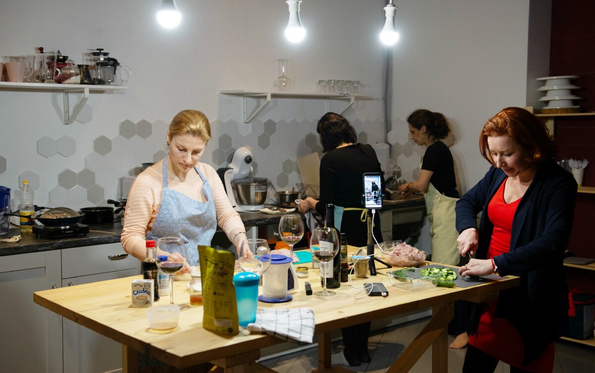 Недавно я побывал на одном очень занимательном мастер-классе от моей хорошей знакомой Лилианы! Суть мастер-класса проста. Собираются вместе несколько человек и готовят одновременно свою самые любимые блюда. Получается своеобразный кулинарный нетворкинг. Люди готовят вместе еду, общаются, обмениваются своими рецептами, пьют красное вино!