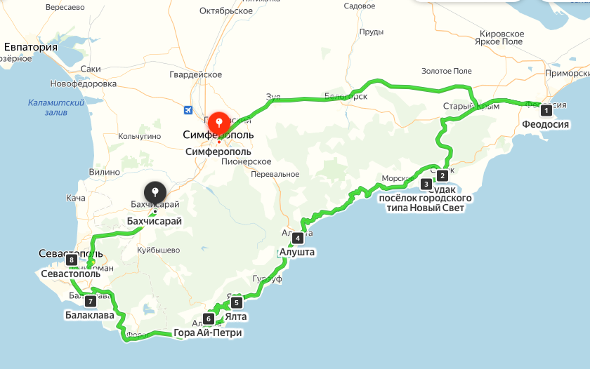 Часть 1. Интро Этим летом мы с девушкой решили отдохнуть на берегу черного моря с палатками, иногда останавливаясь в отелях и исследуя красоты полуострова. Маршрут получился следующий: Когда мы прилетели в аэропорт Симферополя были удивлены его размерами и достаточно новой инфраструктурой. Вдохнув южного воздуха мы сели в ночной автобус до Феодосии. Из-за строительства дороги "Таврида" были небольшие пробки, но в целом за время поездки мы успели немного поспать и отдохнуть.эропорт г. Симферополь Выйдя из автобуса мы прямиком отправились к берегу моря: соленый воздух, шум волн и огни города смотрелись волшебно.Первые полчаса мы просто сидели на наших рюкзаках и смотрели в морскую даль, удивляясь что мы все-таки добрались. Позавтракав сочными крымскими чебуреками мы отправились в Судак. Судак, это небольшой город расположенный на спусках и подъемах, напоминающий маленькую Италию. Известен благодаря своей главной достопримечательности - Генуэзской крепости. Построена генуэзцами (выходцы